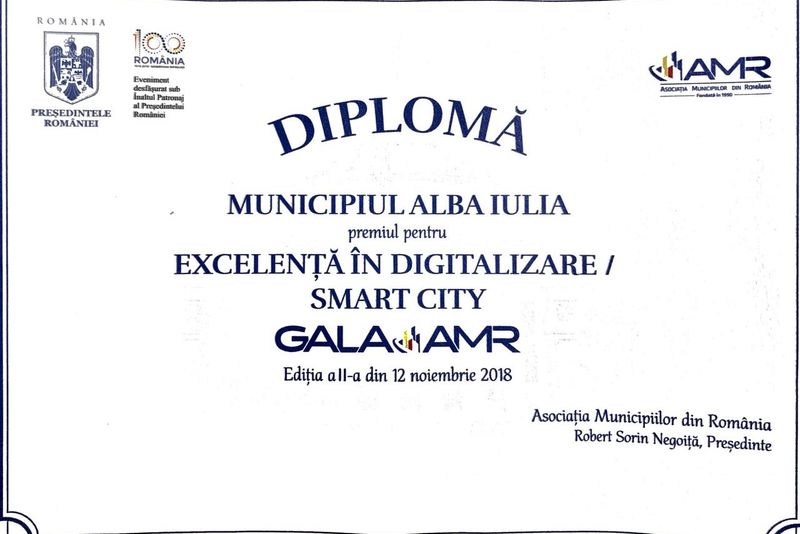 Dupa ce, în prima ediție a Galei Asociației Municipiilor din România Alba Iulia a primit premiul de "Excelență în transport public", municipiul s-a evidențiat, din nou, ca exemplu de bune practici ocupând prima poziție la categoria "Excelenta în digitalizare/ Smart City".