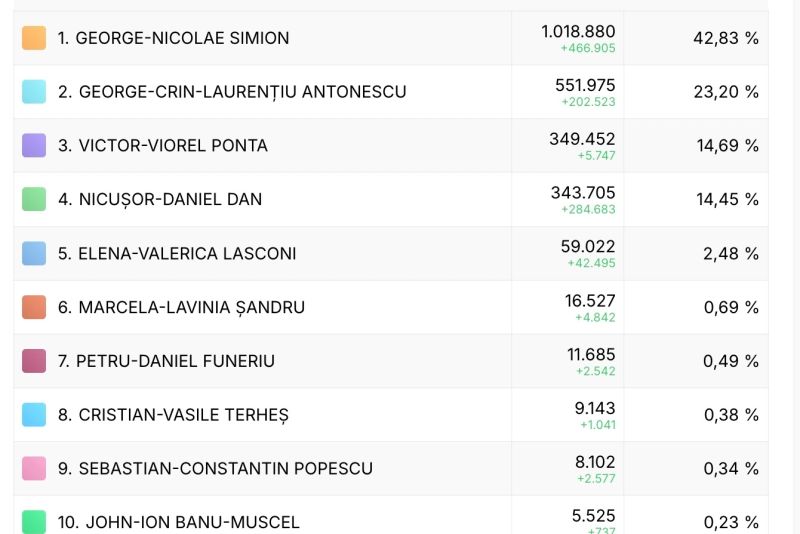 2. GEORGE-CRIN-LAURENȚIU ANTONESCU - 551.975 - 23,20 %
