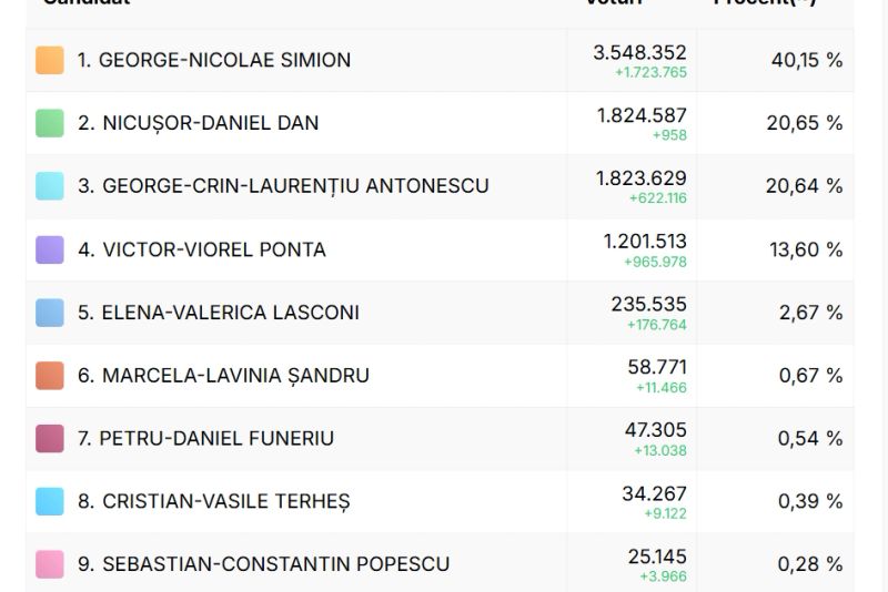 ALEGERI PREZIDENȚIALE 2025. SIMION S-A DETAȘAT CLAR, FINAL DE INFARCT PENTRU LOCUL 2. NICUȘOR DAN L-A DEPĂȘIT PE C. ANTONESCU. REZULTATE OFICIALE BEC