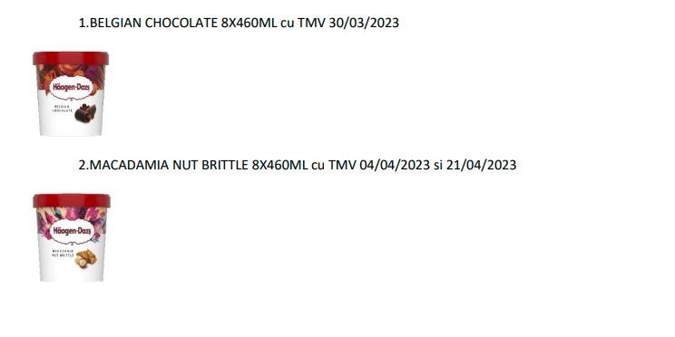 Având în vedere această situație se vor rechema, produsule Häagen-Dazs: