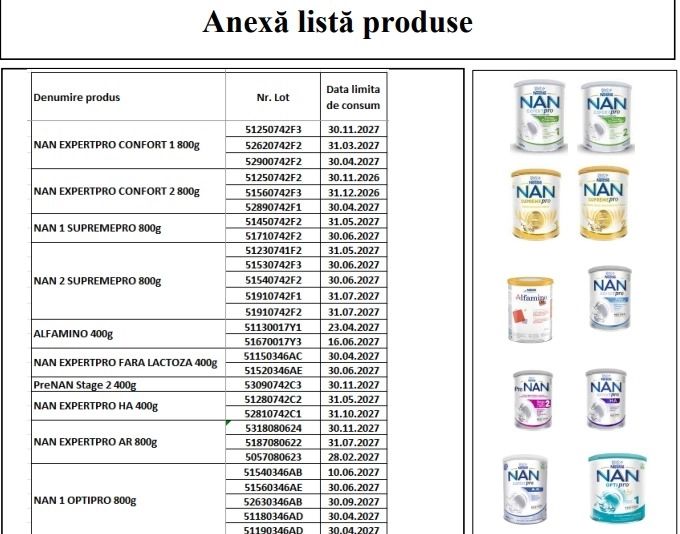 Potrivit unui comunicat al Autorității Naționale Sanitare Veterinare și pentru Siguranța Alimentelor (ANSVSA), măsura a fost luată ca precauție maximă, „siguranța și bunăstarea sugarilor reprezentând prioritatea absolută” a companiei.