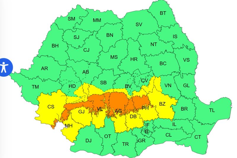 Administrația Națională de Meteorologie a emis luni o avertizare cod portocaliu de ploi abundente, lapoviță și ninsori, valabilă începând de astăzi, ora 10:00, până marți, 27 ianuarie, ora 20:00. În paralel, este activ și un cod galben de precipitații însemnate cantitativ pentru mai multe regiuni ale țării.