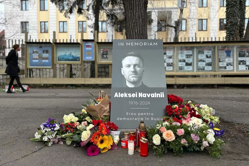 Flori și lumânări, împreună cu un afiș ce conținea un mesaj emblematic în care le cerea rușilor să nu renunțe, au fost plasate în fața Ambasadei Rusiei din București, în semn de comemorare a activistului rus Alexei Navalnîi, care a decedat vineri într-o colonie penitenciară din Siberia.