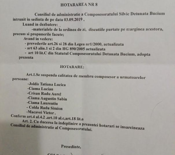 Încălcare grosolană a legii în Composesoratul Bucium Detunata. Mai mulți membrii composesori sunt amenințați de conducere și șantajați, cu documente false, că au fost excluși din Composesorat.