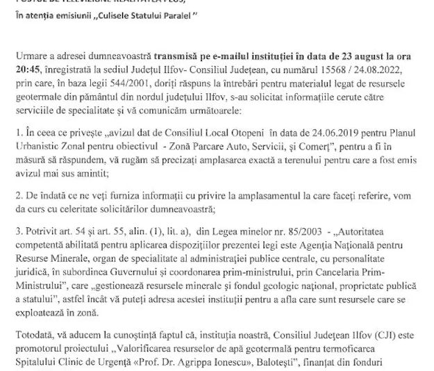 Ca să tragă de timp ne-au spus să le dăm amănunte despre ce parcare e vorba, dar mai jos ne spun ca ei au fost primii care au vrut sa faca proiect cu apele geotermale din Ilfov. Deci știu exact despre ce e vorba.