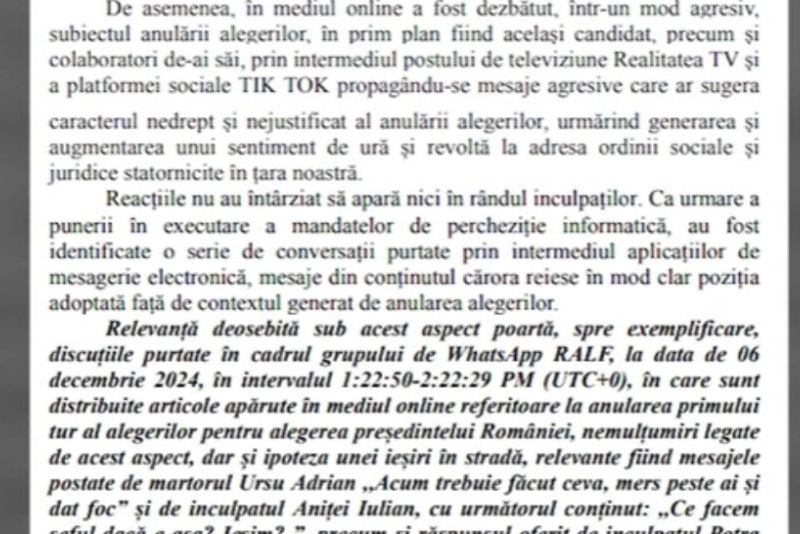 Eu nu am de unde să știu. Nu au făcut legătura dintre Georgescu și rusii. Nu a fost nicio problemă, ci acestea au venit după anularea alegerilor. Acest rechizitoriu confirmă că alegerile au fost anulate fără niciun motiv. Pentru că așa a vrut Iohannis cu gașca lui și cu Ilie Bolojan. Se spune că i-a instigat pe susținătorii săi să iasă să protesteze. De 20 de ori apare, în rechizitoriu, CSP, de 16 Realitatea Plus și de 13 ori Alexandrescu.