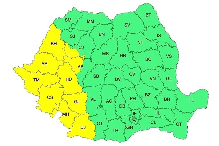 ATENȚIONARE METEOROLOGICĂ - COD GALBEN