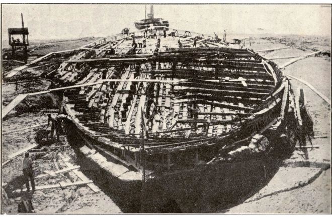 În 1929 planul a fost pus în practică. Inginerii au reactivat un vechi bazin de colectare, tot din vremea romanilor și cu ajutorul pompelor moderne, au reușit să scadă nivelul apei cu circa 20 de metri. În următorii 3 ani, echipele de cercetători au scos din mâl nu una, ci două epave uriașe, printre cele mai mari vestigii maritime antice recuperate.