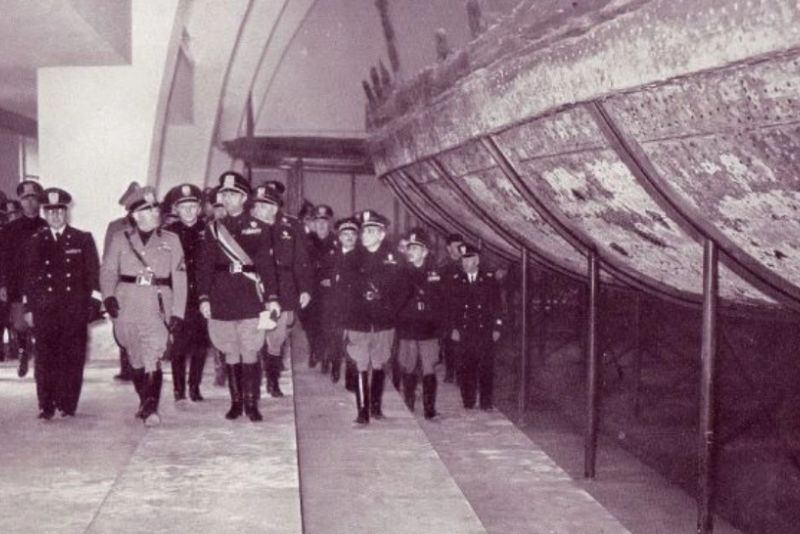 Benito Mussolini la muzeul Nemi (1940 - sursă discovermagazine.com)