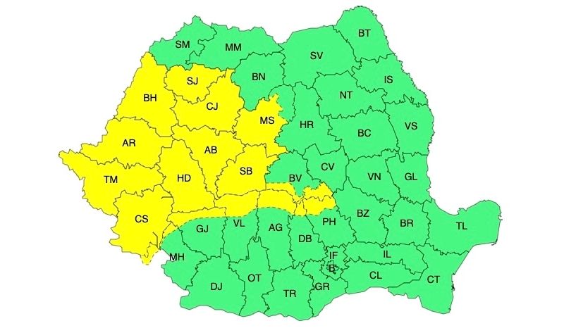ATENȚIONARE ANM: COD GALBEN DE PRECIPITAȚII MIXTE ȘI VIJELII