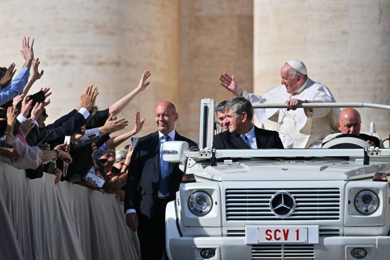 Mașina cu acre se deplasează Papa Francisc/ Foto: Profimedia