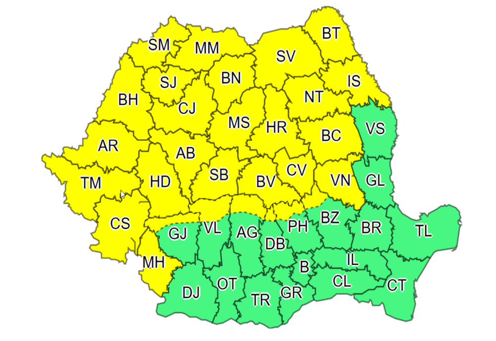 COD GALBEN de furtuni, în 29 de județe din țară