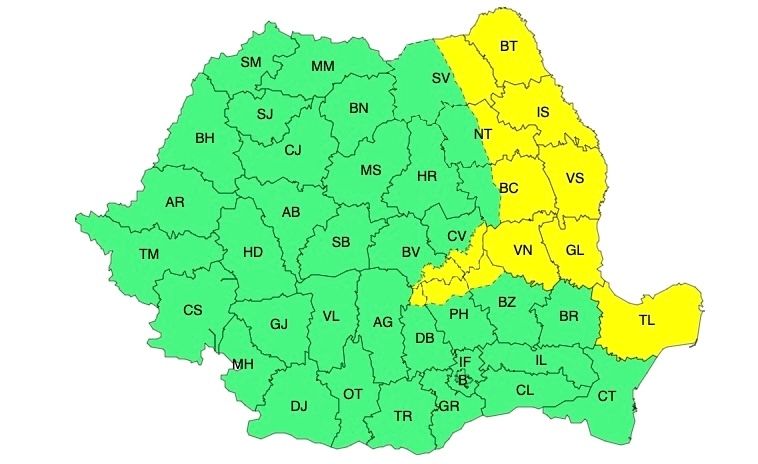 Zone afectate: cea mai mare parte a Moldovei și nordul Dobrogei
