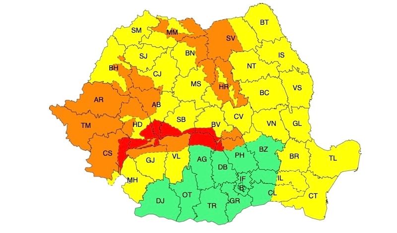 Zone afectate și fenomene vizate: viscol foarte puternic la altitudini de peste 1700 m în județele Caraș-Severin, Hunedoara, Alba, Sibiu, Brașov, Argeș și Dâmbovița