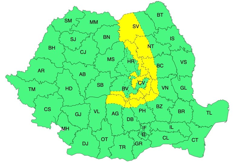 CODUL GALBEN DE VÂNT PUTERNIC A FOST EXTINS. VAL DE FRIG PESTE ROMÂNIA - HARTA