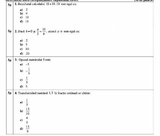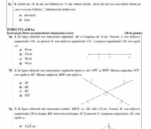 La subiecul I au fost 6 subpuncte, fiind itemi obiectivi – tip grilă, fiecare punctat cu 5 puncte. La fel, subiectul al II-lea are 6 subpuncte, tot grilă și notate tot cu câte 5 puncte fiecare. la subiecul al III-lea problemele nu mai sunt cu răspunsuri de tip grilă.