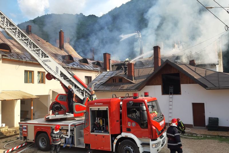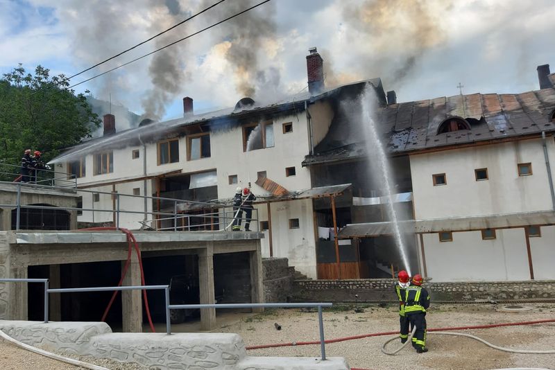 FOTO : Peste 60 de pompieri în LUPTĂ cu flăcările mai bine de 7 ore la Mănăstirea Râmeț