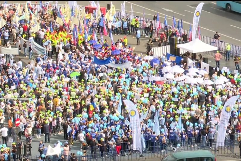 Mii de protestatari adunați în Piața Victoriei au intonat Imnul Național. Oamenii sunt hotărâți să nu renunțe până când Guvernul condus de Bolojan nu revine asupra deciziei care, în opinia lor, nu ține cont de realitățile din teritoriu.