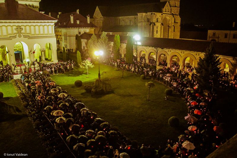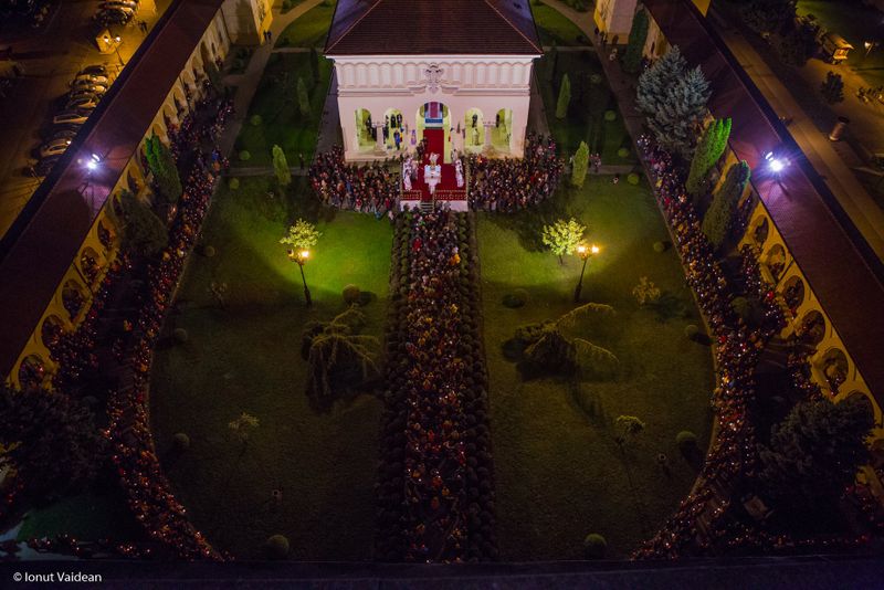 În ciuda vremii de afară, la Catedrala Reîntregirii din Alba Iulia slujba a fost oficiată în aer liber, pe un podium special amenajat, de către Arhiepiscopul Ortodox de Alba Iulia, ÎPS Irineu, alături de un sobor de preoți.