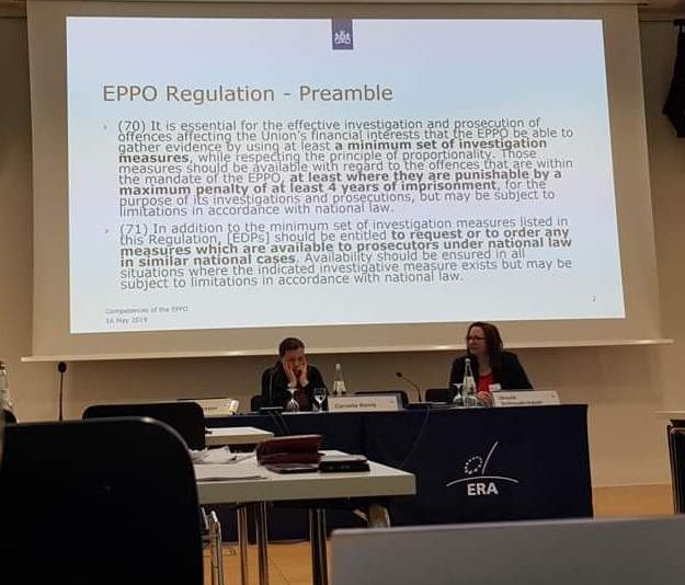 În perioada 16-17 mai 2019 în oraşul Trier din Germania a avut loc seminarul cu tema ”Competences of the EPPO (Parchetul European) and Cooperation with National Authorities - Investigating and Prosecuting Offences in Cooperation with the EPPO”, organizat de ERA (Europaische Rechtsacademy), Ministerul de Justiţie din Luxemburg, ECBA (European Criminal Bar Association) şi EJTN (European Justice Training Network), având ca temă funcţionarea viitorului Parchet European şi relaţiile acestuia cu autorităţile naţionale.