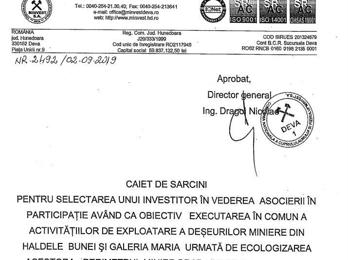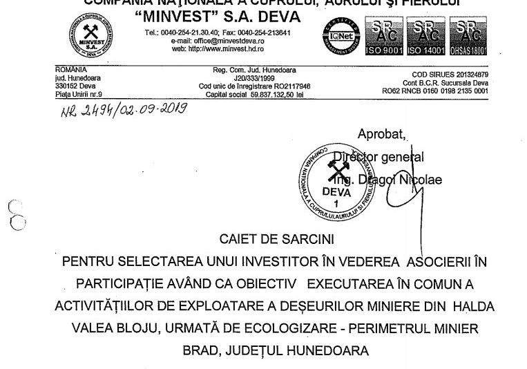 Ei bine cei care nu pun întrebări și nu cer lămuriri unui partener care impune niște reguli fără să aducă în schimb ceva concret, cu siguranță au un singur scop. În acest caz scopul grupului de interese este preluarea perimetrelor miniere care fac obiectul licitațiilor.Și după cum au evoluat lucrurile, neoficial la această oră , firma favorită pentru aceste asocieri de către C.N.C.A.F. Minvest Deva, este MINERO REMEDIATION SRL o firmă care din prima analiză făcută, dacă era respectat caietul de sarcini, nu avea dreptul să participle la licitație.