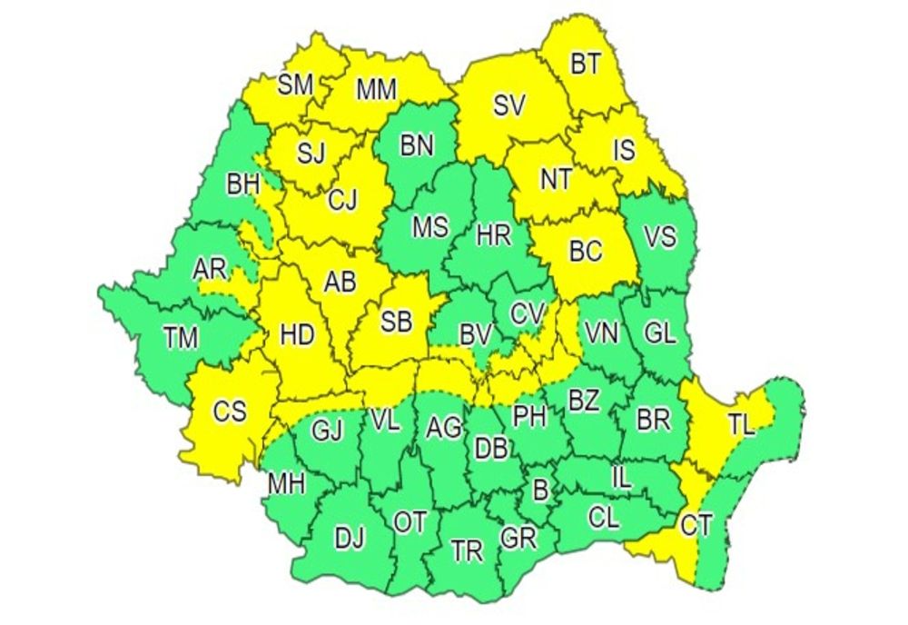 Administrația Națională de Meteorologie a emis pentru aproape 30 de județe o avertizare COD GALBEN de instabilitate atmosferică accentuată, valabilă până la noapte.