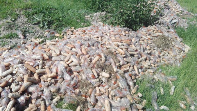 Mii de cornuri din programul ” Cornul și laptele” , aruncate pe malul râului Mureș într-o zonă greu accesibilă