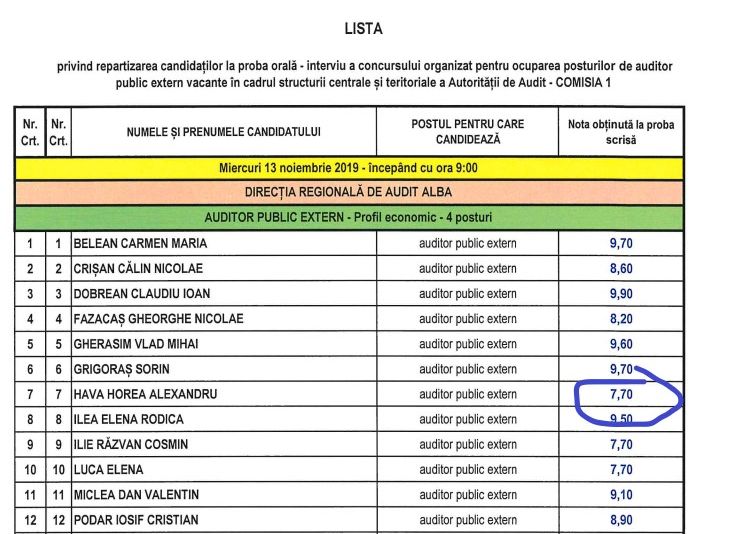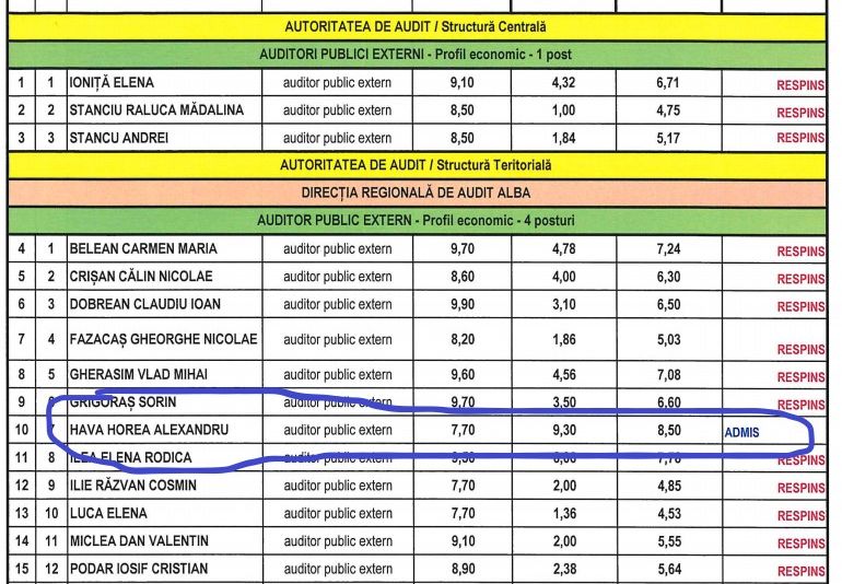 Oralul, l-a salvat pe fiul unui politician celebru din Alba, la un concurs organizat de Curtea de Conturi a României. Cum a fost admis Horea Alexandru Hava pentru postul de auditor public ?