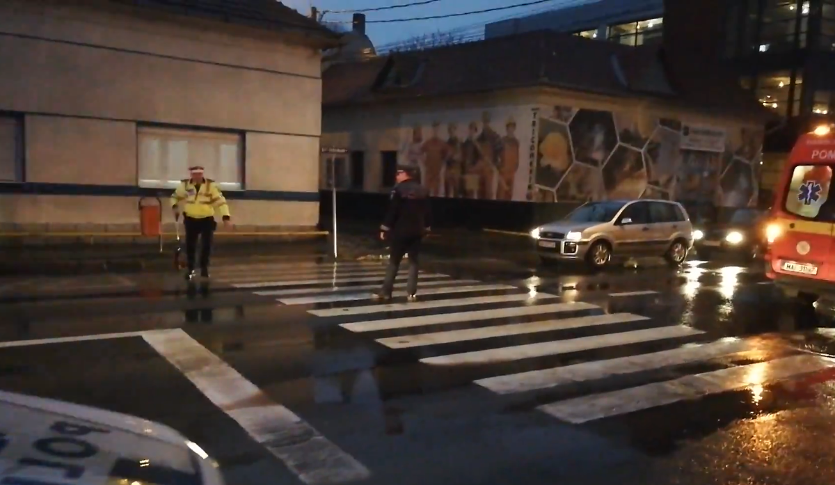 Un pieton a fost lovit de o mașină, miercuri, în Alba Iulia, pe trecerea de pietoni de lângă ACR.