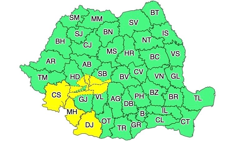 În județele Caraș-Severin, Mehedinți și Dolj, vântul va avea intensificări cu viteze de 55...60 km/h.
