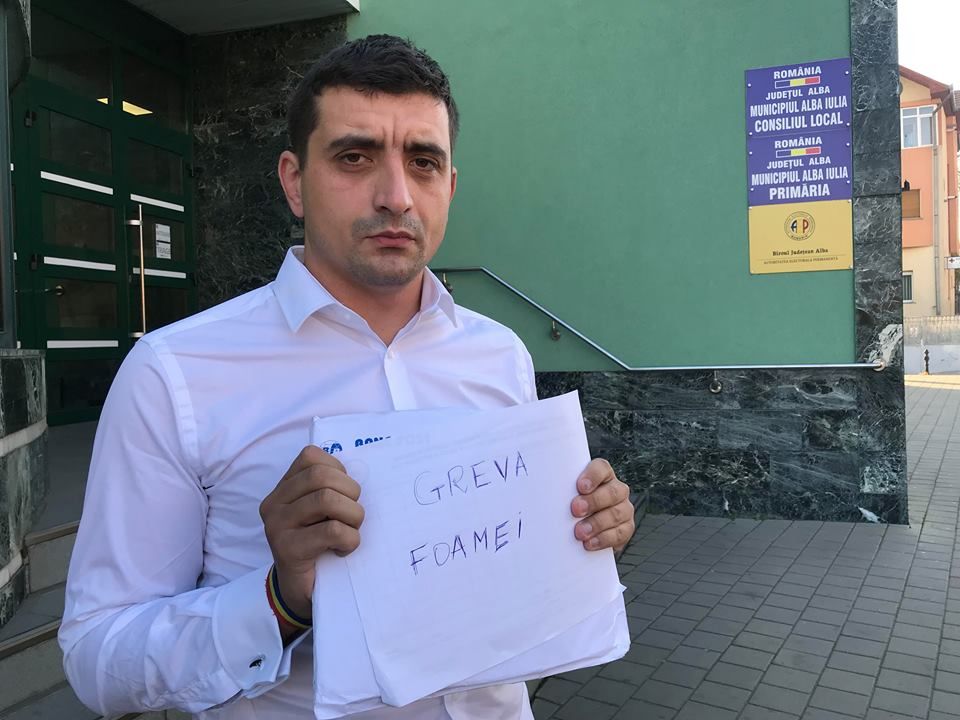 În fața Primăriei din Alba Iulia, președintele Acțiunii 2012, George Simion a intrat marți în greva foamei.