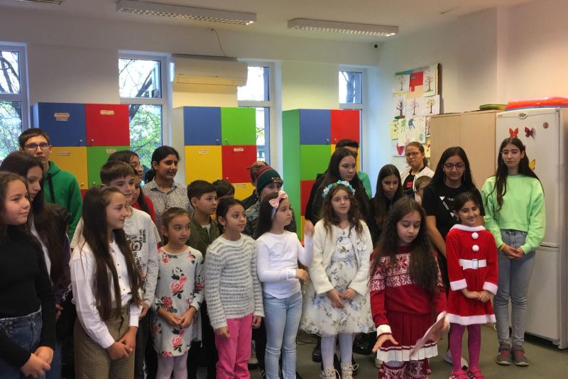 Și, cum nicio faptă bună nu rămane nerăsplătită, Moșul și ajutoarele au fost întâmpinați cu un spectacol de colinde și poezii de iarnă.