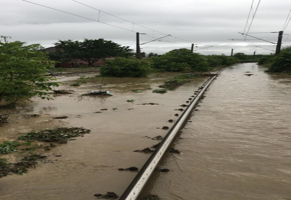 Trenuri blocate în urma unei ploi torențiale în județul Alba. Municipiul Aiud este sub ape și mai mulți oameni au fost evacuați.